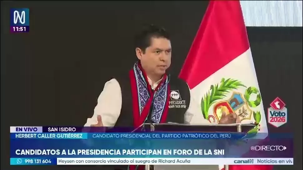 El candidato presidencial del Partido Patriótico del Perú, Herbert Caller, presentó propuestas en materia de desarrollo productivo durante su participación en un foro, donde planteó incrementar la inversión en la industria y fortalecer el financiamiento a microempresas.