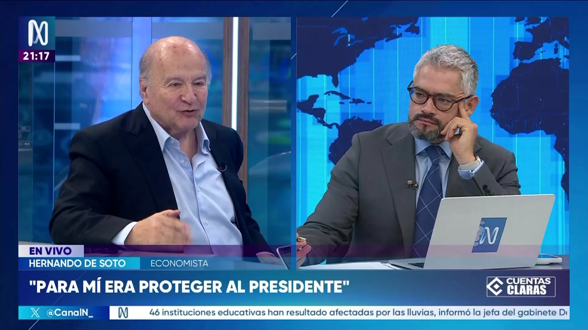 Hernando de Soto sostuvo que no tenía claridad sobre el momento exacto del quiebre en la coordinación. Afirmó que acudió a la entrevista para intentar entender qué ocurrió entre el mediodía y la tarde del día previo a la juramentación.