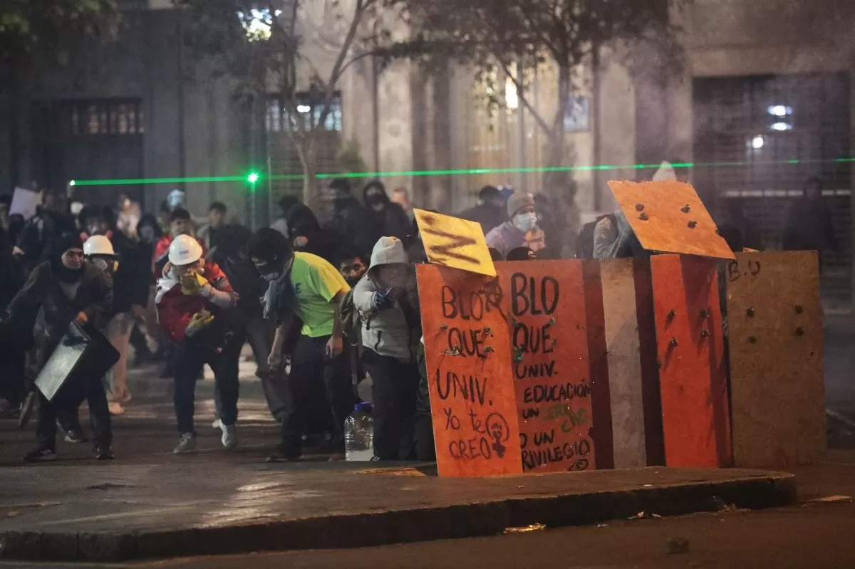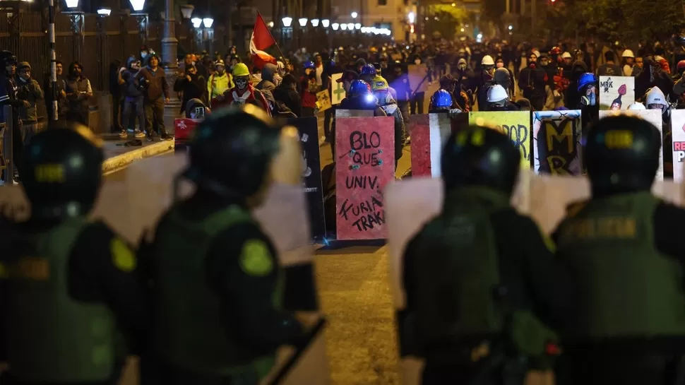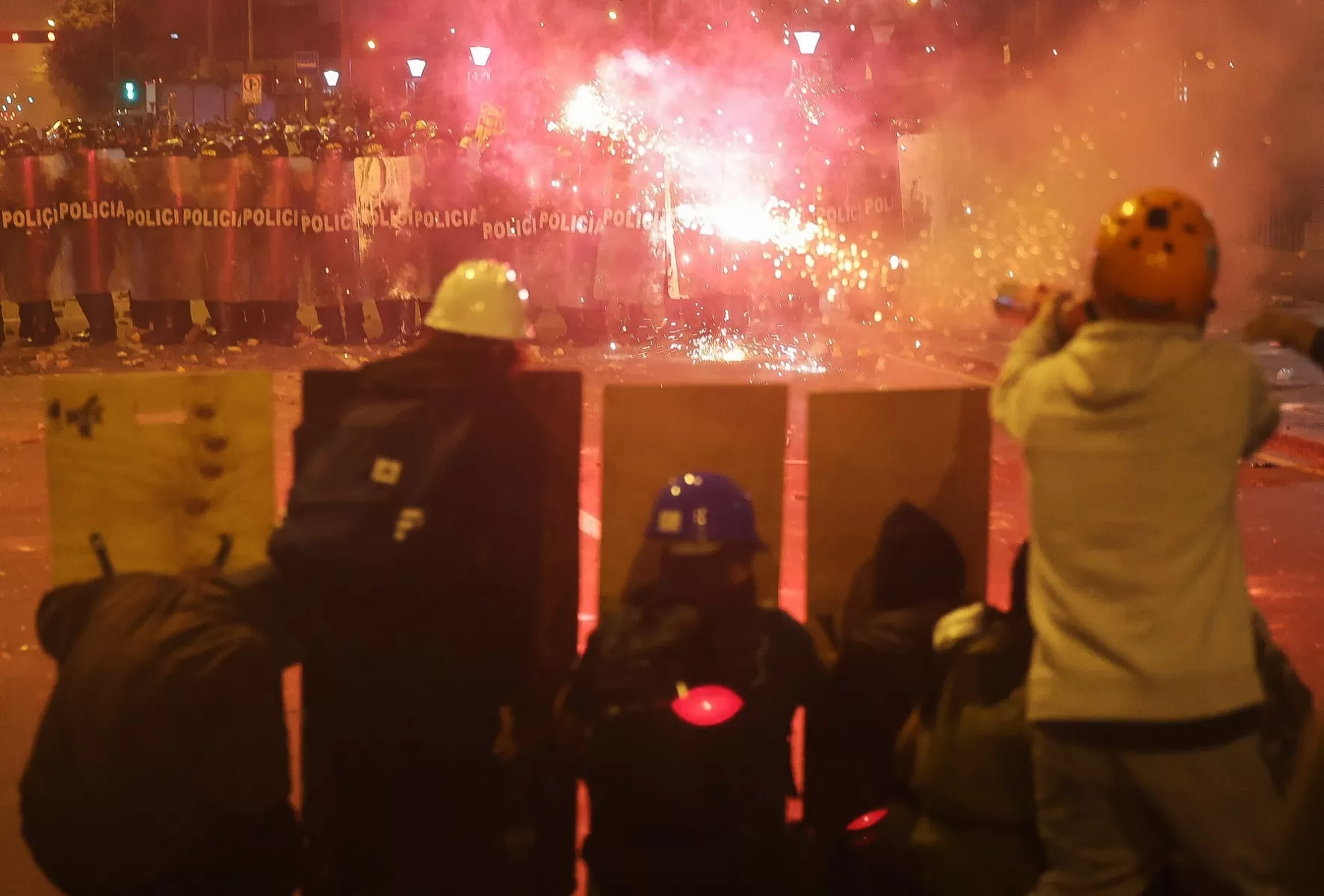 Los disturbios se produjeron tras varias horas de desplazamiento pacífico en el Centro de Lima. Según reportes, alrededor de las 19:00 horas se registraron actos de violencia que desencadenaron enfrentamientos entre manifestantes y fuerzas del orden. Algunos de los participantes usaron escudos, máscaras antigás, bombas molotov y fuegos artificiales.