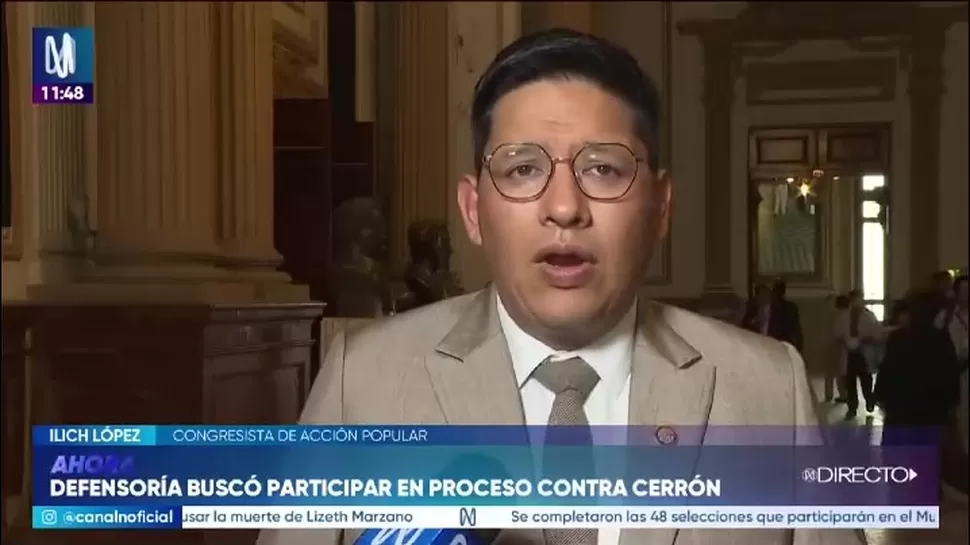 El congresista Ilich López, de Acción Popular, señaló en Canal N que la actuación del defensor del pueblo, Josué Gutiérrez, debe ser evaluada conforme a la ley. Indicó que cualquier acción fuera del marco normativo puede ser cuestionada.