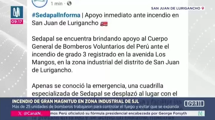Frente a las críticas, Sedapal comunicó a través de sus redes sociales que una cuadrilla especializada fue enviada al lugar de la emergencia apenas recibida la alerta. Asimismo, aseguraron que su personal técnico permaneció en la zona supervisando el flujo de agua durante toda la intervención de los bomberos.