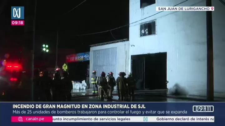 Un incendio de gran magnitud destruyó una fábrica de pinturas ubicada en la zona industrial de San Juan de Lurigancho. El siniestro se registró alrededor de las 5:40 de la tarde del domingo 9 de noviembre y generó fuertes explosiones que alarmaron a los vecinos del sector. Según reportes oficiales, más de 25 unidades del Cuerpo General de Bomberos trabajaron por más de cinco horas para controlar las llamas.