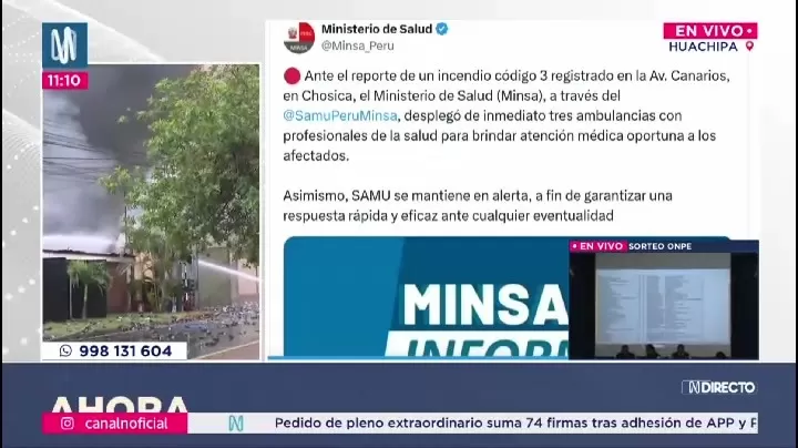 Las autoridades recordaron que ante emergencias se puede llamar al 116 para los bomberos, al 106 para el SAMU y al 105 para la Policía Nacional. El incendio continúa en desarrollo y se espera información adicional en las próximas horas.