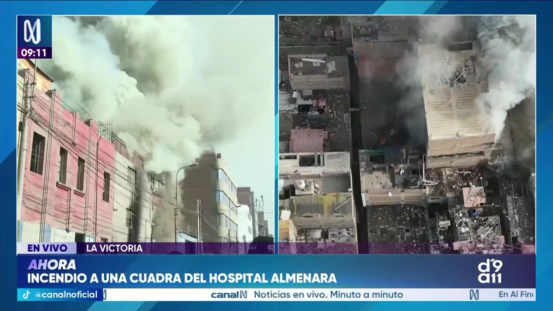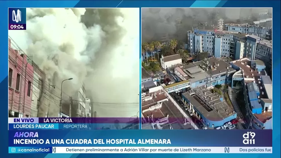 Un incendio de grandes proporciones se registra en un almacén de material textil en el distrito de La Victoria, específicamente en la intersección de los jirones Abtao y García Naranjo. La emergencia ha provocado una densa columna de humo que afecta la visibilidad y la calidad del aire en las inmediaciones del Hospital Guillermo Almenara de EsSalud.