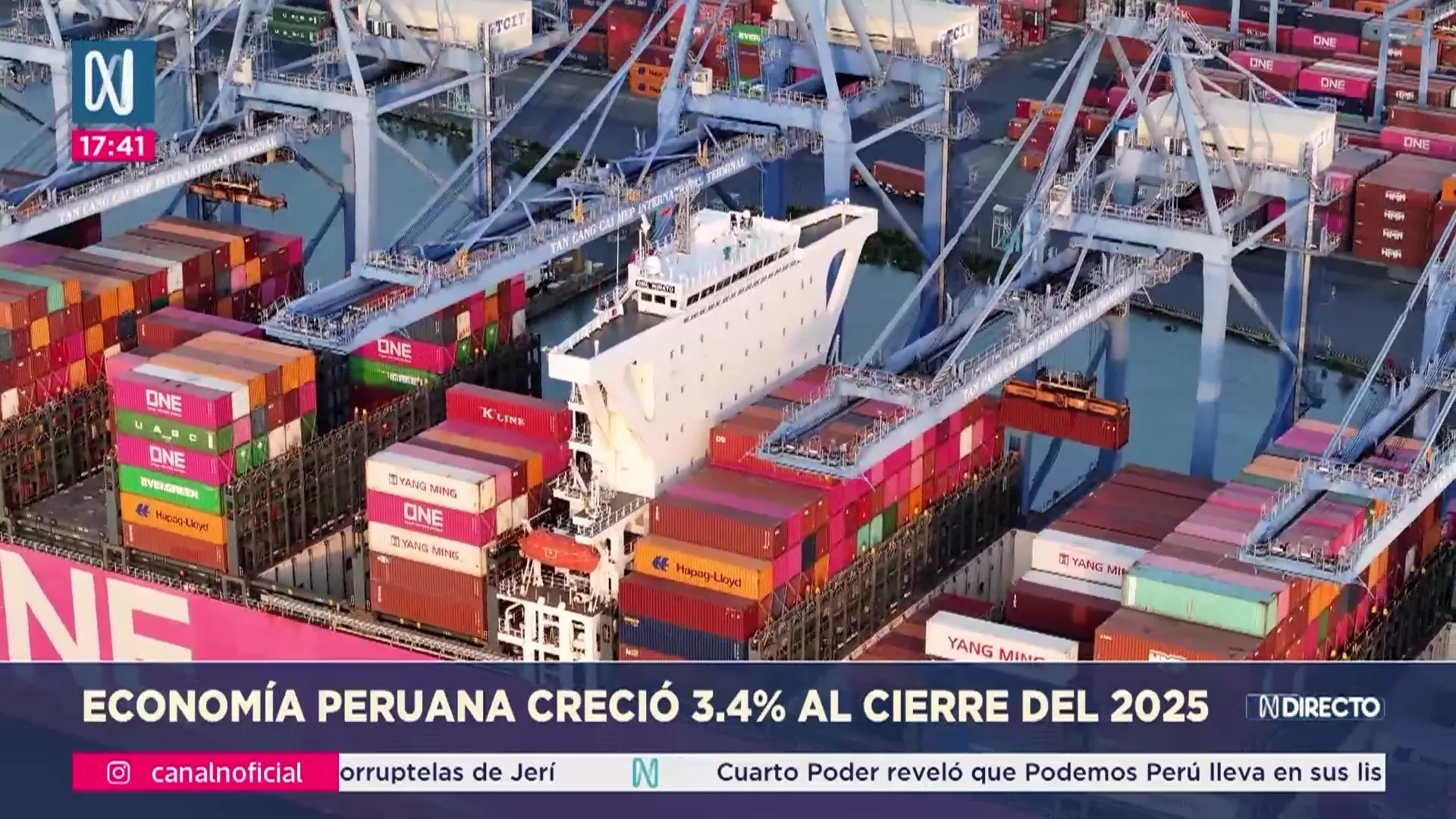 La economía peruana registró un crecimiento de 3.4% al cierre del 2025, de acuerdo con el Instituto Nacional de Estadística e Informática (INEI). El resultado estuvo impulsado principalmente por los sectores construcción y comercio, según el reporte oficial.