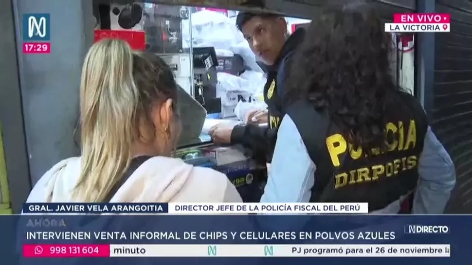 La Policía Nacional del Perú ejecutó un nuevo operativo inopinado en el centro comercial Polvos Azules para combatir la venta de teléfonos celulares de procedencia ilícita. Esta intervención fue liderada por la Dirección de Policía Fiscal con apoyo de personal de DINOES, tránsito y unidades especializadas de la Dirección de Investigación Criminal.