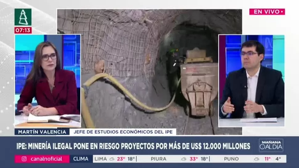 Uno de los factores que el IPE identifica como amenaza estructural para la economía es la expansión de la minería ilegal, que podría poner en riesgo una cartera de proyectos mineros valorizados en más de US$ 12 mil millones. Cajamarca y Apurímac serían las regiones más vulnerables, debido a la presencia de mineros informales en zonas donde se planean grandes operaciones como Conga, Michiquillay, Los Chancas y Haquira.