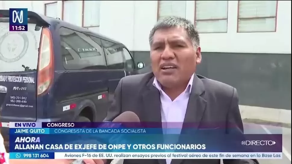 El congresista Jaime Quito se pronunció sobre la moción de censura contra el presidente José Balcázar, así como sobre los allanamientos a exfuncionarios de la Oficina Nacional de Procesos Electorales, en el marco de las investigaciones por presuntas irregularidades en el proceso electoral.