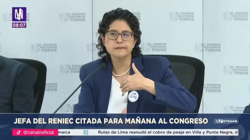 La jefa del Registro Nacional de Identificación y Estado Civil (Reniec), Carmen Velarde, ha sido citada para este lunes por la Comisión de Ciencia, Innovación y Tecnología del Congreso. La sesión está programada para las 9 de la mañana y abordará la reciente publicación de información personal contenida en el padrón Inicial de ciudadanos.