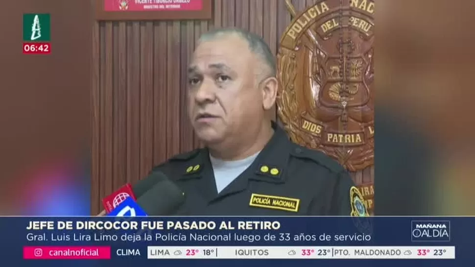 El general PNP Luis Alberto Lira Limo, quien actualmente se desempeña como jefe de la Dirección contra la Corrupción (Dircocor), pasará a la situación de retiro a partir del 1 de enero de 2026. La medida fue oficializada por el Poder Ejecutivo mediante la Resolución Suprema N° 429-2025-IN, tras cumplir el oficial 33 años de servicios en la institución.