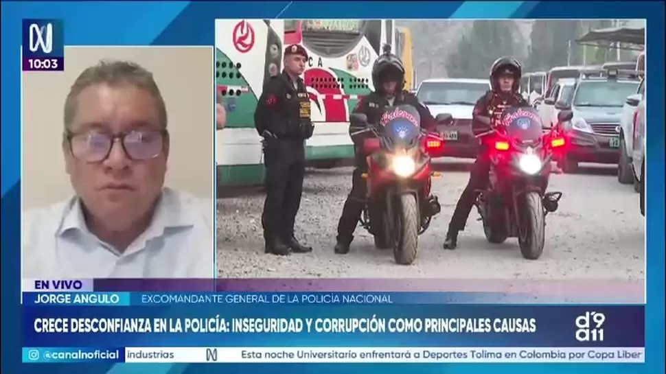 El excomandante general de la Policía Nacional, Jorge Angulo, se pronunció sobre los niveles de desconfianza ciudadana hacia la institución, señalando que están vinculados a problemas de corrupción, limitaciones operativas y factores estructurales.
