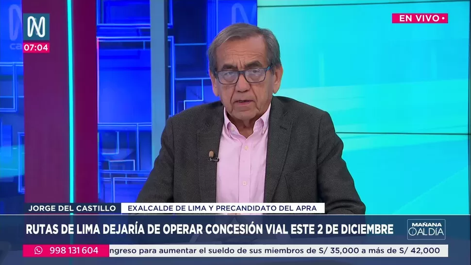 Jorge del Castillo, exalcalde de Lima y actual precandidato presidencial del APRA, cuestionó públicamente la decisión de dar por terminado el contrato con la concesionaria Rutas de Lima, cuya operación cesaría desde el 2 de diciembre.