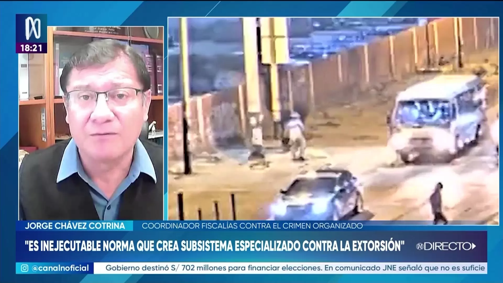 El fiscal mencionó el decreto legislativo 1735, que establece la creación de un sistema especializado contra sicariato y extorsión. Indicó que su implementación demandaría aproximadamente 90 millones de soles.