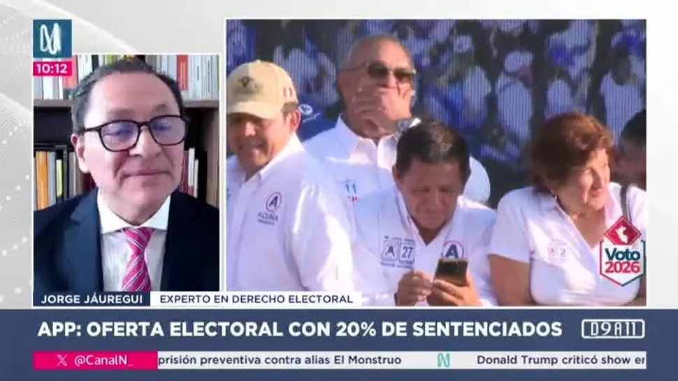 Durante la entrevista en Canal N, Jáuregui precisó que la legislación electoral impide postular a personas con sentencias condenatorias vigentes, así como a deudores de alimentos o reparaciones civiles. Indicó que el artículo 34A de la Constitución establece el impedimento para quienes cuentan con sentencias en primera instancia por delitos dolosos.