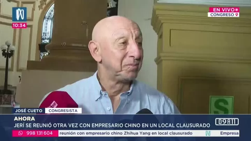 El congresista de la bancada de Honor y Democracia, José Cueto, expresó duras críticas contra el presidente José Jerí tras la revelación de una segunda reunión no oficial con el empresario chino Zhihua Yang.