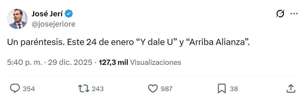 José Jerí: "Este 24 de enero ‘Y dale U’ y ‘Arriba Alianza’”