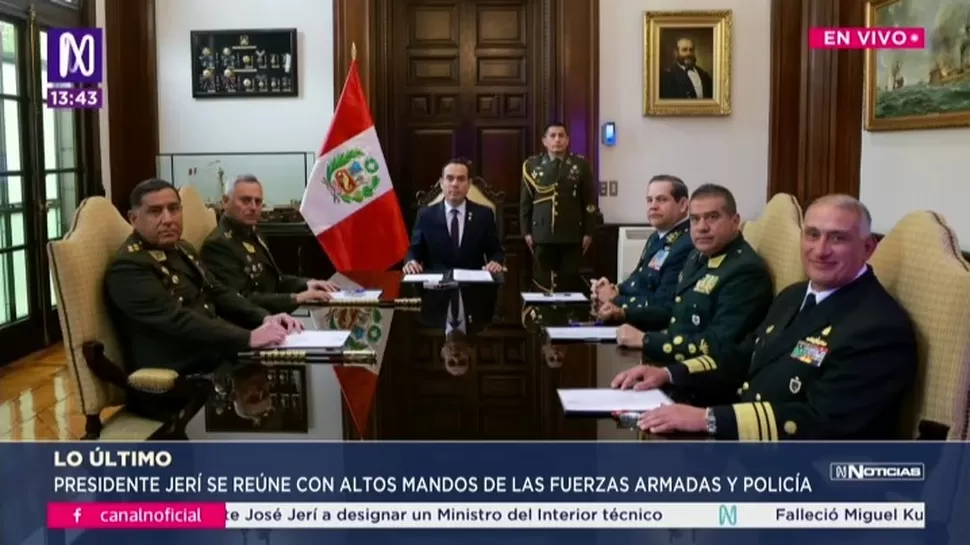 El presidente de la República, José Jerí Oré, sostuvo este miércoles su primera reunión oficial de trabajo con los altos mandos de las Fuerzas Armadas y de la Policía Nacional del Perú, como parte de su compromiso para enfrentar de forma frontal la criminalidad en el país.
