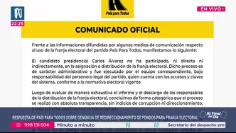 Afirmó que, en estos casos, la responsabilidad recae en el partido y en la persona acreditada ante la ONPE para administrar la franja electoral.
