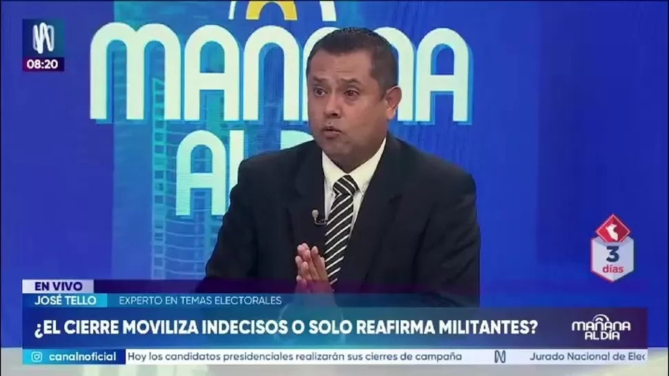 A pocas horas del cierre de campañas electorales, el exministro de Justicia y especialista en temas electorales, José Tello, se refirió al rol que cumplen los mítines en la etapa final del proceso.