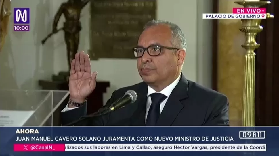 La presidenta Dina Boluarte tomó juramento este martes a Juan Manuel Cavero Solano como nuevo ministro de Justicia y Derechos Humanos.