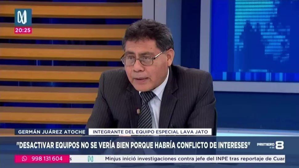 El fiscal del equipo especial Lava Jato, Germán Juárez Atoche, advirtió este lunes que el fiscal de la Nación interino, Tomás Gálvez, podría incurrir en un conflicto de intereses si decide desactivar los equipos especiales del Ministerio Público. Sus declaraciones fueron brindadas en una entrevista con el programa N Portada de Canal N.