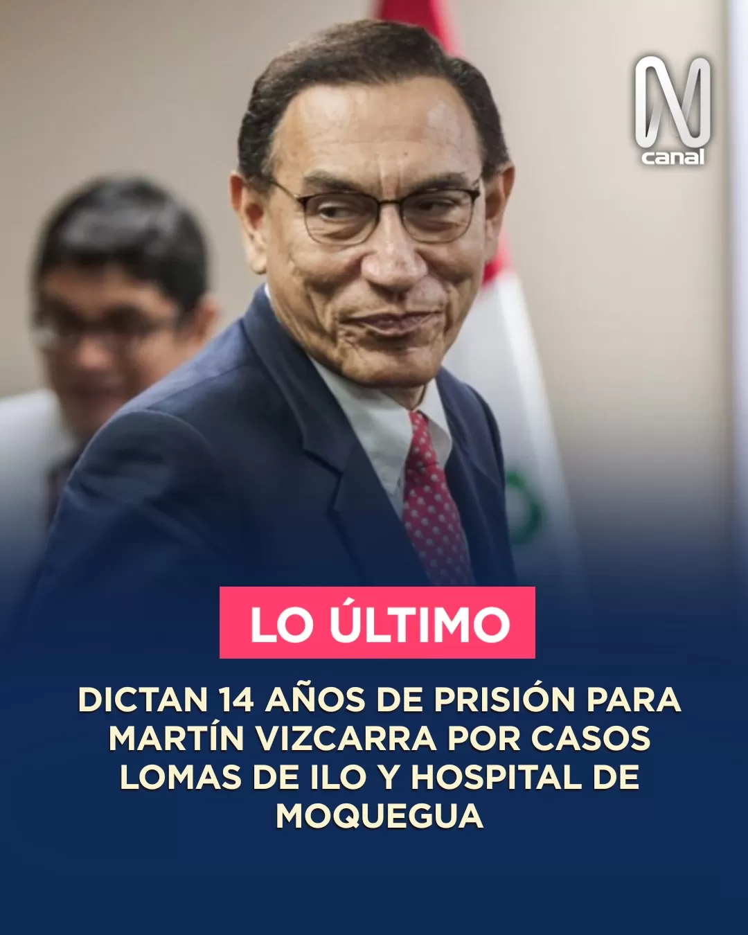 El Poder Judicial ordenó catorce años de prisión contra el expresidente Martín Vizcarra por el delito de cohecho pasivo propio por casos Lomas de Ilo (6 años) y Hospital de Moquegua (8 años) .