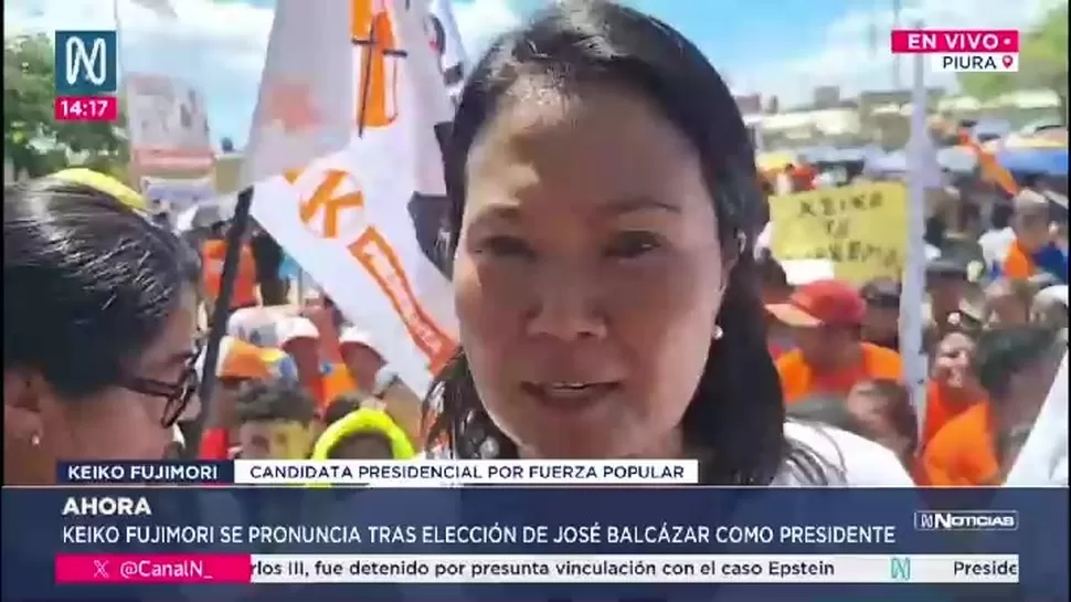 Consultada sobre el respaldo al nuevo presidente, señaló que Fuerza Popular estará atenta no a los anuncios, sino a las decisiones que adopte José María Balcázar.