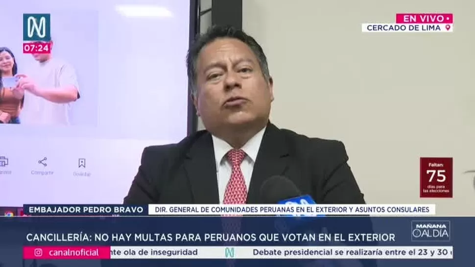 El embajador Pedro Bravo, director general de comunidades peruanas en el exterior, informó que 1.210.813 peruanos residentes en el extranjero están habilitados para votar en las elecciones generales de 2026.