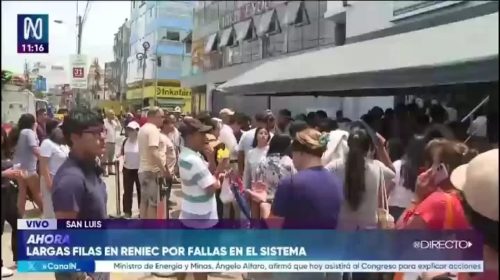 Usuarios reportan extensas colas y demoras en la atención en la sede del Reniec ubicada en la avenida San Luis. Algunos señalan que el sistema se habría caído mientras esperan realizar trámites o recoger su DNI