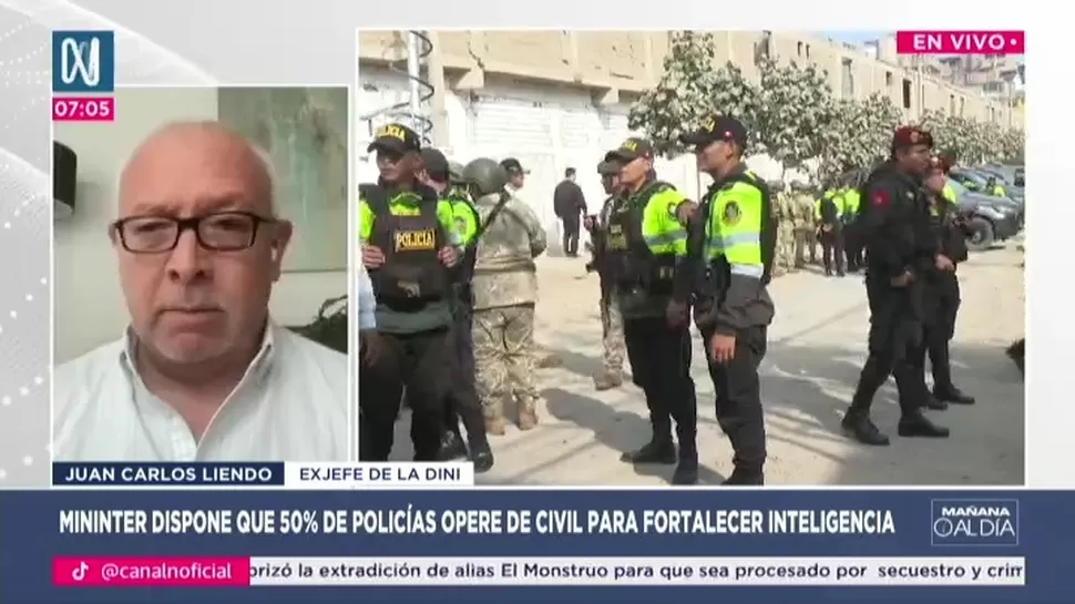 El exjefe de la Dirección Nacional de Inteligencia (DINI), Juan Carlos Liendo, advirtió que la disposición del Ministerio del Interior (Mininter) para que el 50 % de la Policía Nacional opere de civil es una medida temporal y efectista.