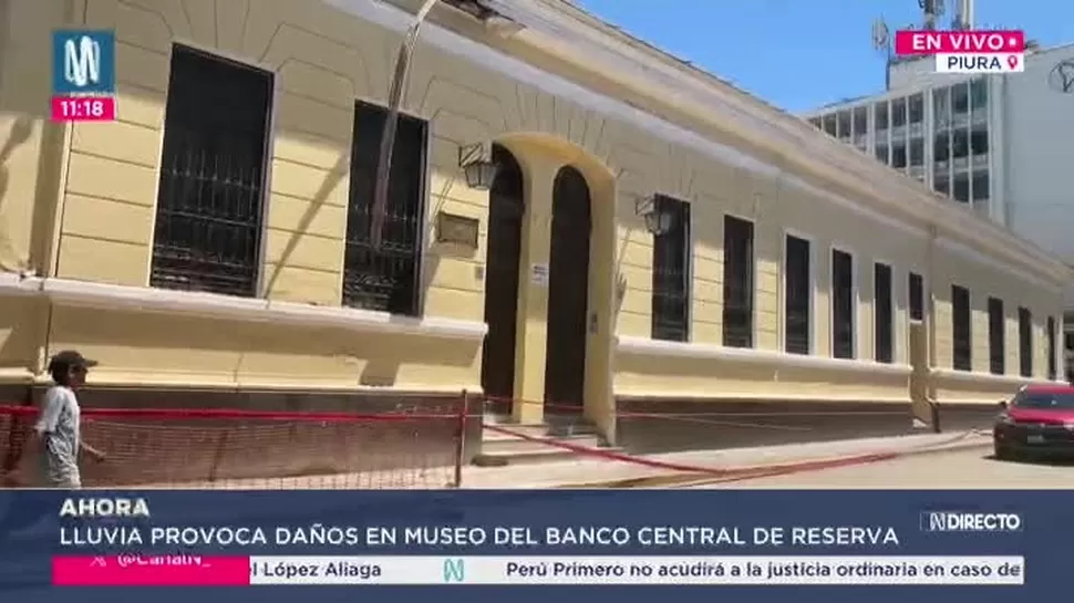 Una parte de la cornisa del techo del edificio del Banco Central de Reserva (BCR) en Piura colapsó la noche del martes tras una lluvia ligera de 4 milímetros.