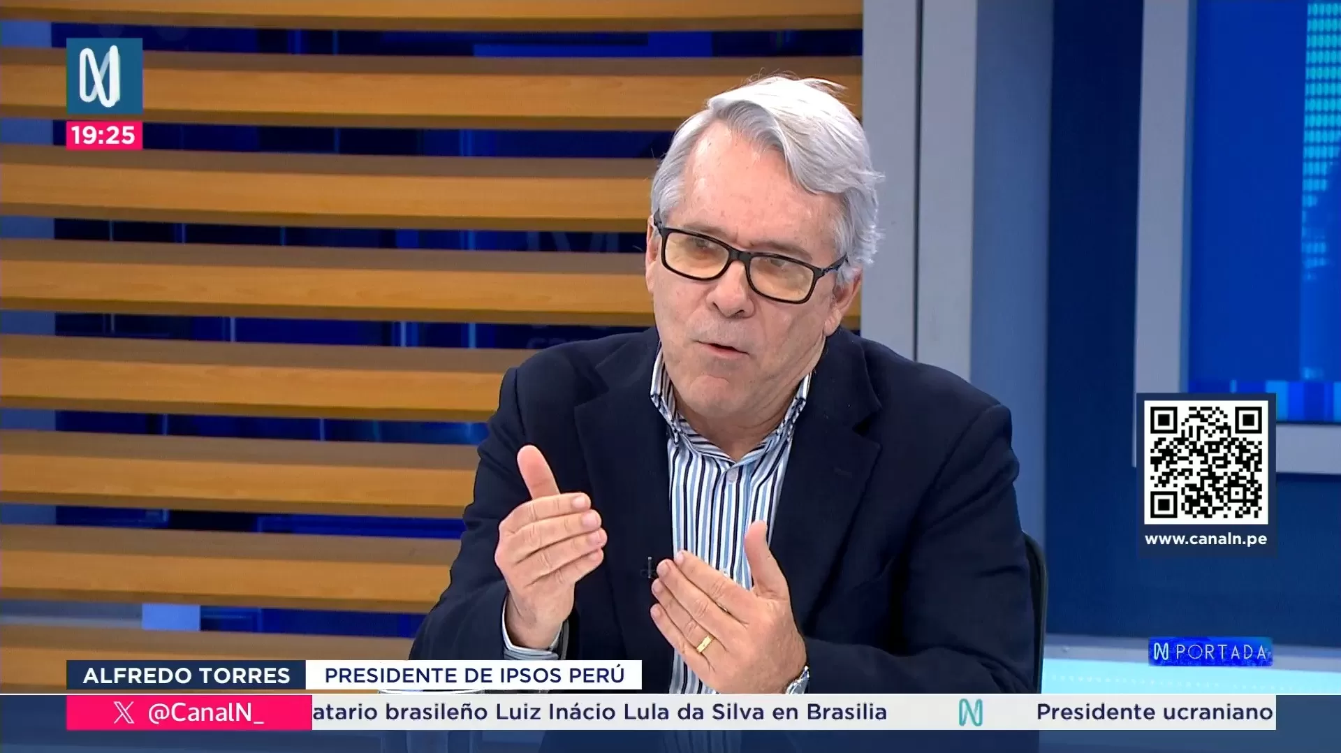 El presidente de Ipsos Perú, Alfredo Torres, explicó en Canal N que el crecimiento sostenido de Rafael López Aliaga en la reciente encuesta que realizó la compañía a la que representa responde a factores como su presencia en medios, el discurso de infraestructura, su activismo opositor y una campaña efectiva en redes sociales.
