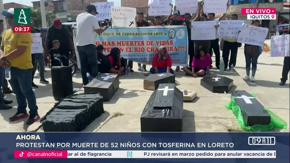 Madres indígenas de comunidades nativas en Urarinas, Loreto, protestan frente al Gobierno Regional exigiendo que se declare la emergencia sanitaria en la zona del río Chambira. Según denunciaron, al menos 52 niños han fallecido por falta de atención médica.