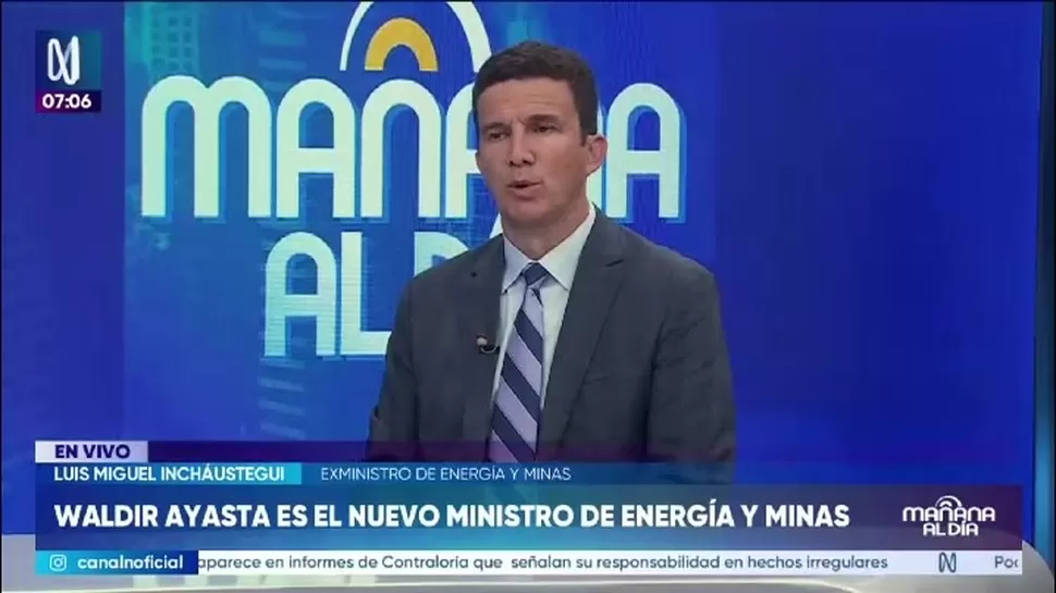 Luis Miguel Inchaustegui, exministro de Energía y Minas, se pronunció sobre la designación de Waldir Ayasta como titular del sector, quien reemplaza a Ángelo Alfaro.