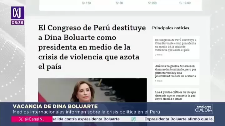 La vacancia de Dina Boluarte por “incapacidad moral permanente”, aprobada por el Congreso de la República, ha sido ampliamente cubierta por medios internacionales. Diversos diarios y canales informativos destacaron la rapidez del proceso y la inestabilidad política que atraviesa el país.