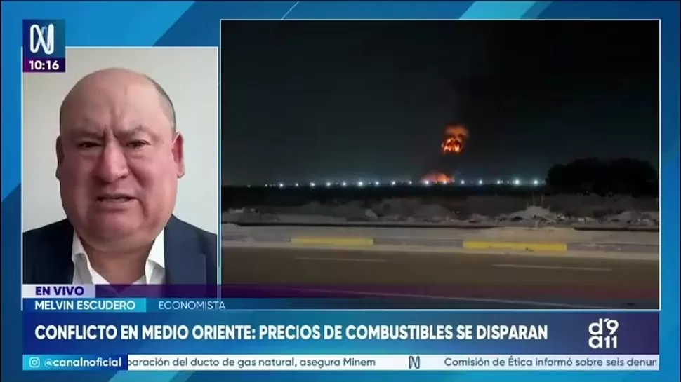 El economista Melvin Escudero explicó en Canal N que la actual crisis energética en el país responde a la combinación de tres factores: el conflicto internacional relacionado con Irán, la interrupción del suministro de gas de Camisea y los efectos del fenómeno de El Niño.