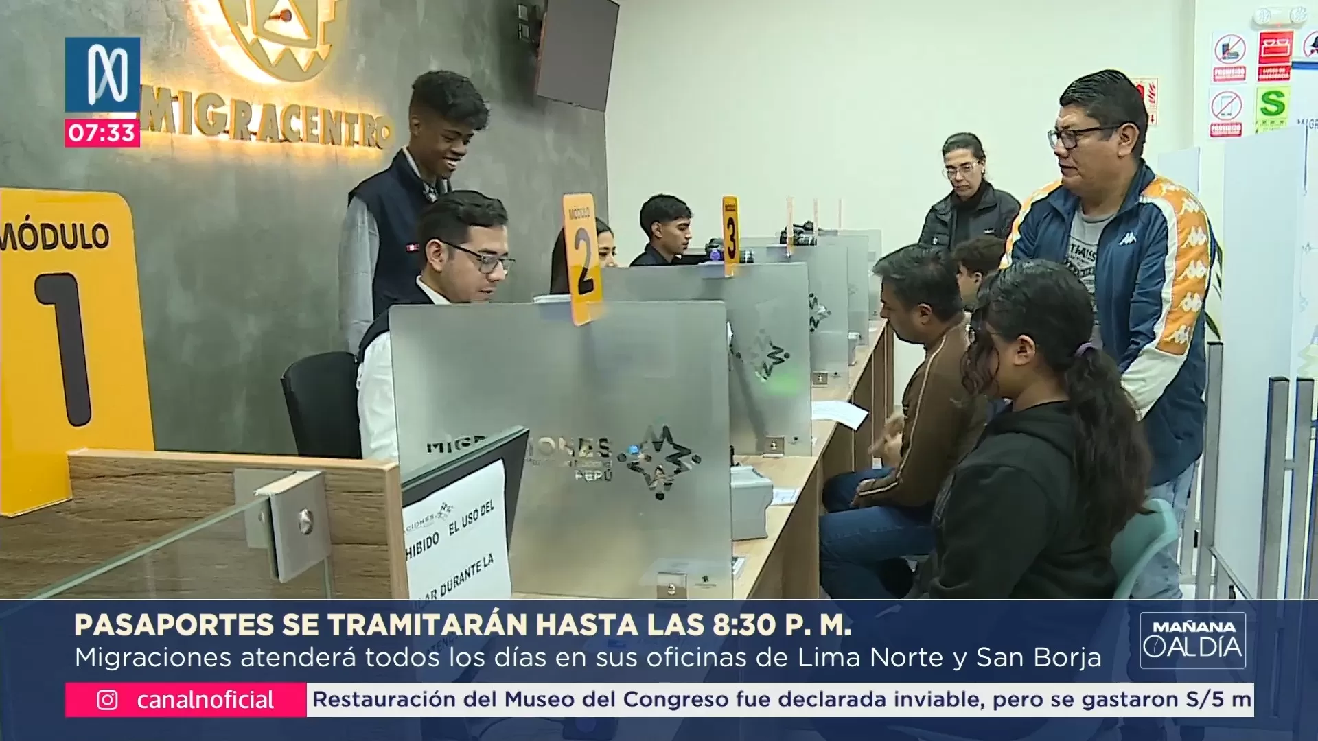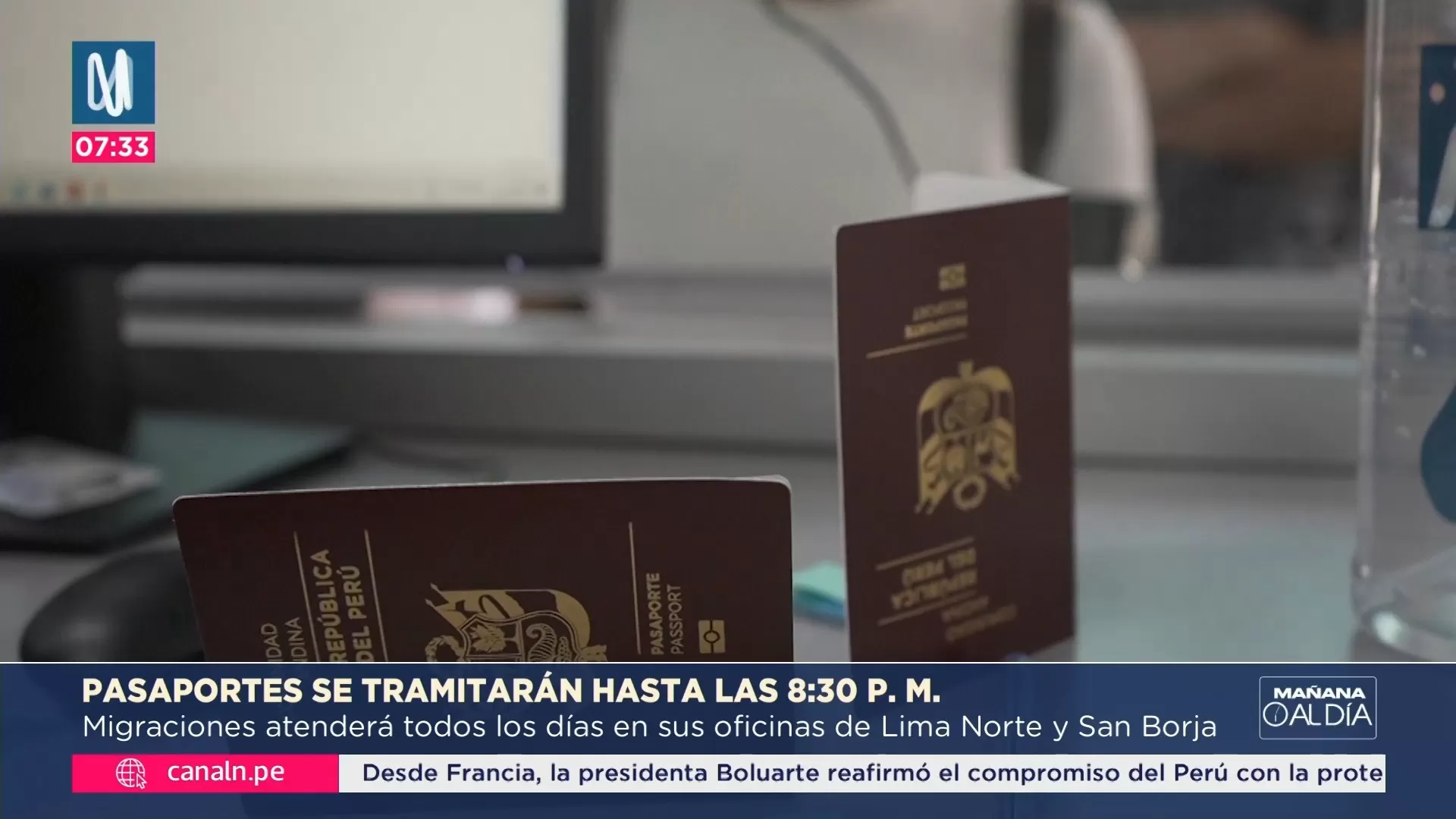 La Superintendencia Nacional de Migraciones anunció la ampliación del horario de atención en dos de sus sedes en Lima, con el objetivo de facilitar a los usuarios el acceso al pasaporte electrónico. Esta medida se aplicará en los locales ubicados en Real Plaza Primavera (San Borja) y Mall Plaza Norte (Comas), donde la atención será de lunes a domingo de 8:30 a. m. a 8:30 p. m.