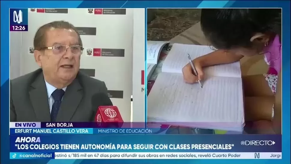 El ministro explicó que la resolución publicada contempla excepciones para determinadas instituciones educativas. Entre ellas mencionó centros de educación inicial, guarderías, educación especial y colegios que no cuentan con plataformas digitales. En estos casos, los centros educativos pueden continuar desarrollando clases presenciales.