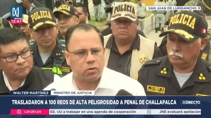 Walter Martínez estuvo acompañado por el jefe del Instituto Nacional Penitenciario (INPE), Yván Paredes. Durante el operativo, explicó que los reclusos trasladados serán separados de los internos en régimen cerrado ordinario, como parte de una estrategia de aislamiento penitenciario para evitar que continúen delinquiendo desde los centros de reclusión.