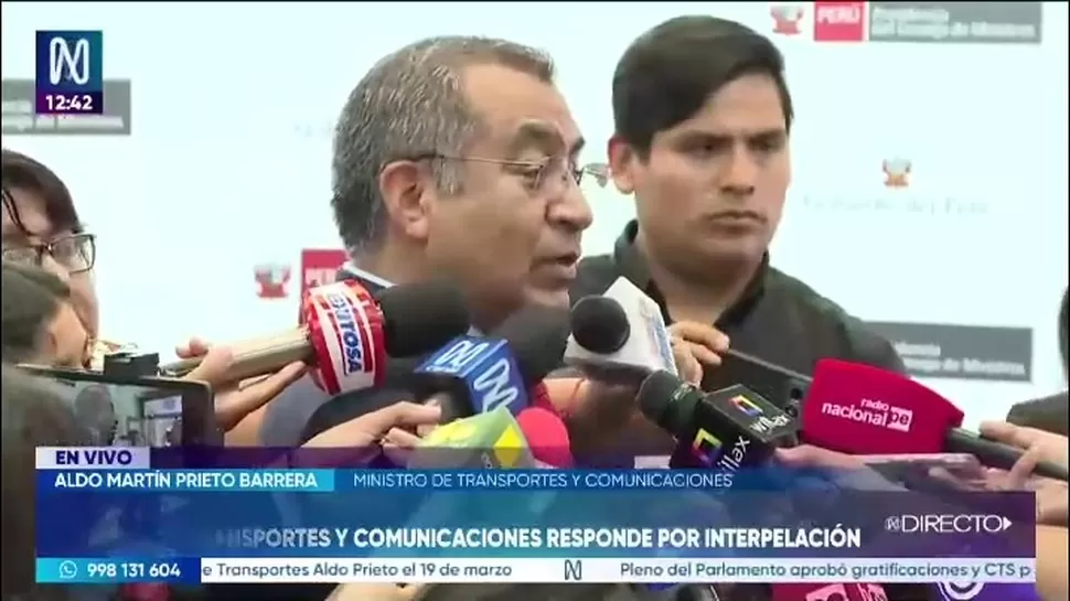 El ministro de Transportes, Aldo Prieto Barrera, se refirió a la interpelación que enfrentará en el Congreso el jueves 19 de marzo y señaló que la decisión sobre una eventual censura corresponde al Parlamento.
