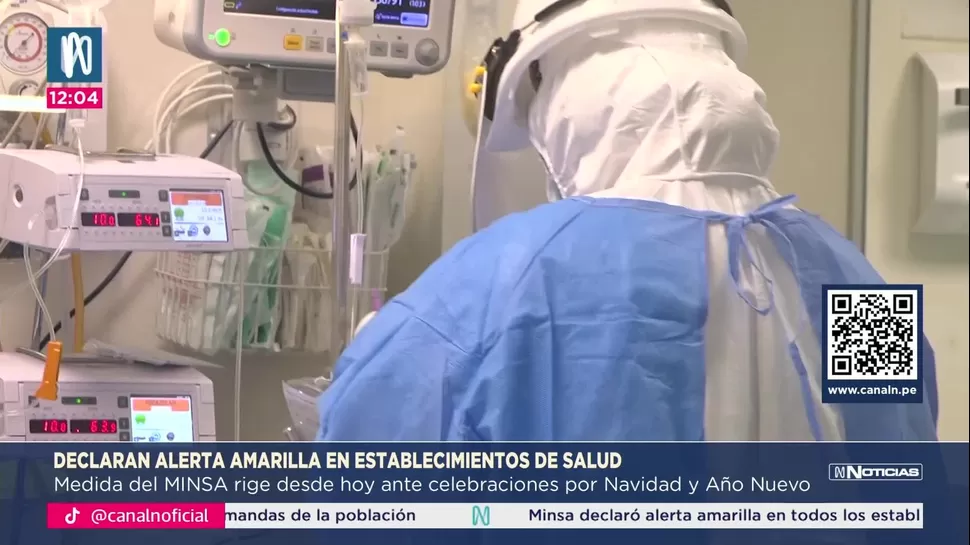 El Ministerio de Salud (Minsa) declaró alerta amarilla en todos los establecimientos de salud del país, con motivo de las celebraciones por Navidad y Año Nuevo. La medida, que rige desde las 00:00 horas del 20 de diciembre de 2025 hasta las 00:00 horas del 5 de enero de 2026, fue oficializada mediante la Resolución Ministerial N.º 935-2025/MINSA, publicada en el Diario Oficial El Peruano.
