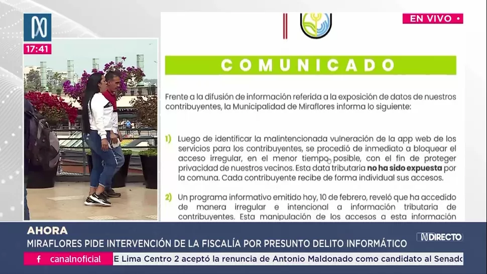 La Municipalidad de Miraflores emitió un comunicado oficial tras la difusión de información vinculada a una presunta exposición de datos tributarios de contribuyentes del distrito, en el que detalló las acciones adoptadas frente a un acceso irregular a su aplicación web de servicios.