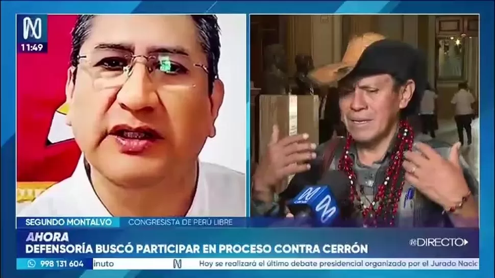 Asimismo, indicó que cualquier cuestionamiento debe ser verificado por las instancias competentes. Montalvo señaló que no considera que exista un conflicto de interés en la participación del defensor del pueblo en el proceso de Vladimir Cerrón. Indicó que su rol es velar por los derechos fundamentales de todas las personas.