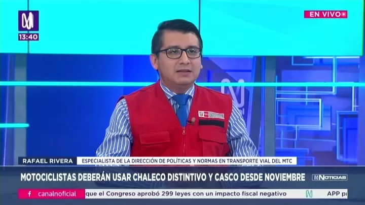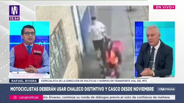 Así lo señaló Rafael Rivera, especialista de la Dirección de Políticas y Normas en Transporte Vial del MTC, durante una entrevista a Canal N, en la que defendió la norma que obliga el uso de chaleco y casco con especificaciones técnicas desde noviembre.