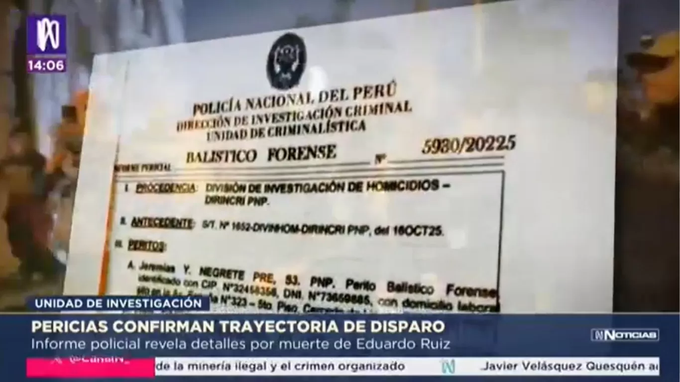 La Fiscalía formalizó la investigación preparatoria contra el suboficial Luis Magallanes por la muerte de Eduardo Ruiz en protestas del 15 de octubre. Se solicitó comparecencia con restricciones e impedimento de salida del país. El proyectil hallado en la víctima presentaba deformaciones y una trayectoria compatible con rebote. La Fiscalía ha incorporado informes periciales y planea una reconstrucción de los hechos. Magallanes permanece detenido en un hospital policial mientras se resuelve su situación jurídica. El Poder Judicial deberá fijar audiencia para evaluar las medidas solicitadas. La investigación continúa con diligencias pendientes y bajo supervisión de la Fiscalía Penal Supraprovincial.