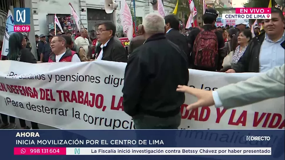 La movilización fue convocada para exigir medidas del Gobierno frente a la inseguridad ciudadana y los casos de corrupción. Las protestas se replican también en otras regiones del país y cuentan con resguardo policial en distintos puntos del Centro Histórico.