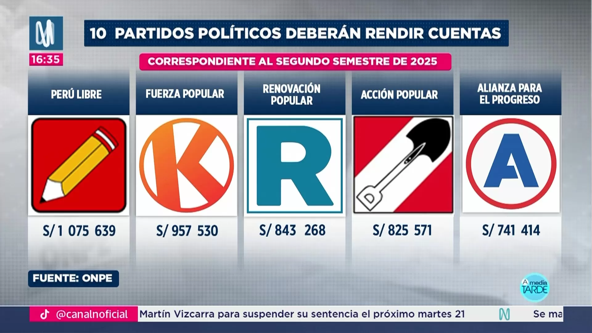 La Oficina Nacional de Procesos Electorales (ONPE) informó que diez partidos políticos deberán presentar su rendición de cuentas por el uso del financiamiento público directo correspondiente al segundo semestre del año 2025. La fecha límite para cumplir con esta obligación es el 15 de enero de 2026, según lo establecido en el Reglamento de Financiamiento y Supervisión de Fondos Partidarios (RFSFP).