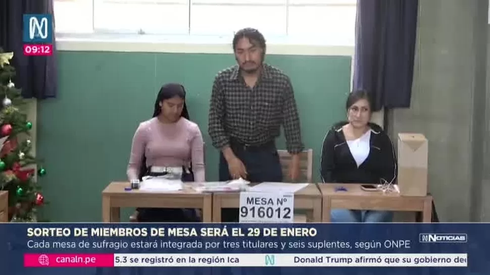 La Oficina Nacional de Procesos Electorales (ONPE) realizará el 29 de enero el sorteo de los ciudadanos que cumplirán el rol de miembros de mesa durante las elecciones generales 2026. El proceso busca garantizar el desarrollo ordenado de la jornada electoral.