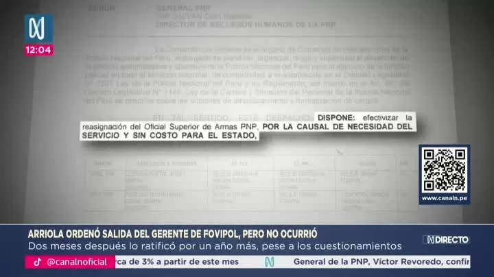 El comandante general de la Policía Nacional, Óscar Arriola, firmó en noviembre de 2025 una orden para disponer la reasignación del coronel Edgar Paredes Montenegro desde el Fondo de Vivienda Policial (Fovipol) a la Región Policial Lima Centro. Sin embargo, dicha disposición nunca fue ejecutada y el oficial continuó en el cargo.