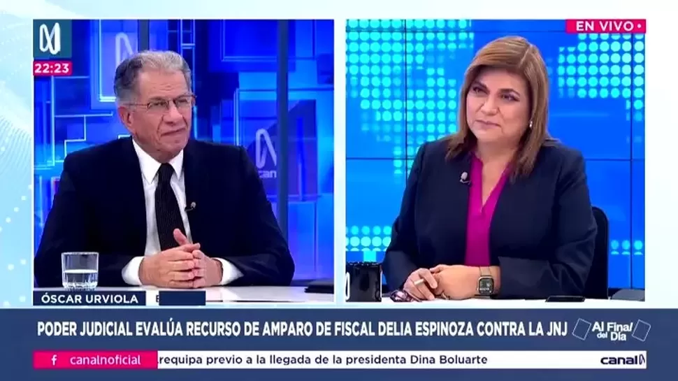 El expresidente del Tribunal Constitucional (TC), Óscar Urviola, cuestionó la defensa de la fiscal suprema Delia Espinoza durante la audiencia de amparo presentada contra la Resolución 231 de la Junta Nacional de Justicia (JNJ). “La única que se ha tendido una trampa es ella misma”, afirmó en el programa Al Final del Día de Canal N.